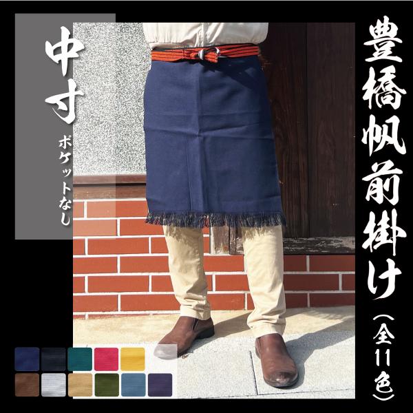 豊橋 帆前掛け 帆前掛け 無地 中寸 ポケットなし 丈夫な帆布生地 酒屋 前掛け 作業用 ユニフォーム アウトドア 日本製 厚手 しなやか