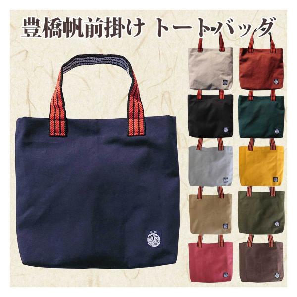 日本製 帆前掛け 生地使用 和風 トートバッグ ポケット付き マグネットボタン 帆布 丈夫 豊橋帆前掛け生地 紐表:オレンジ