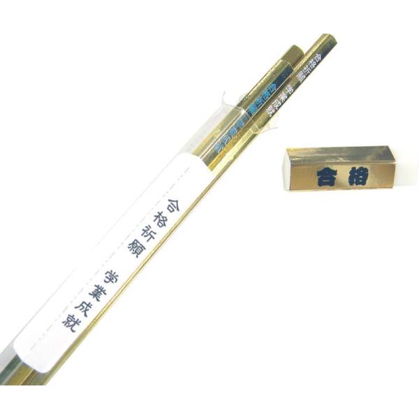 受験生 応援グッズ 金の合格五角鉛筆 3本 金の合格五角消しゴム1個セット(オリジナルクリアケース入り) ネコポス可(10セットまで)