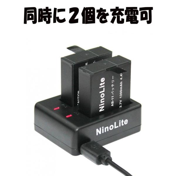 AB11_m アクションカメラ バッテリー2個セット と USB充電器 3点セット ODRVM OD7200 OD9000R 等 対応 NinoLite AB-11