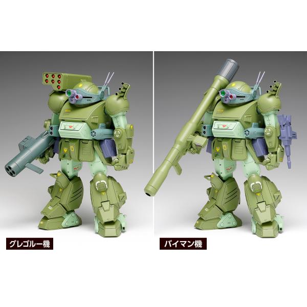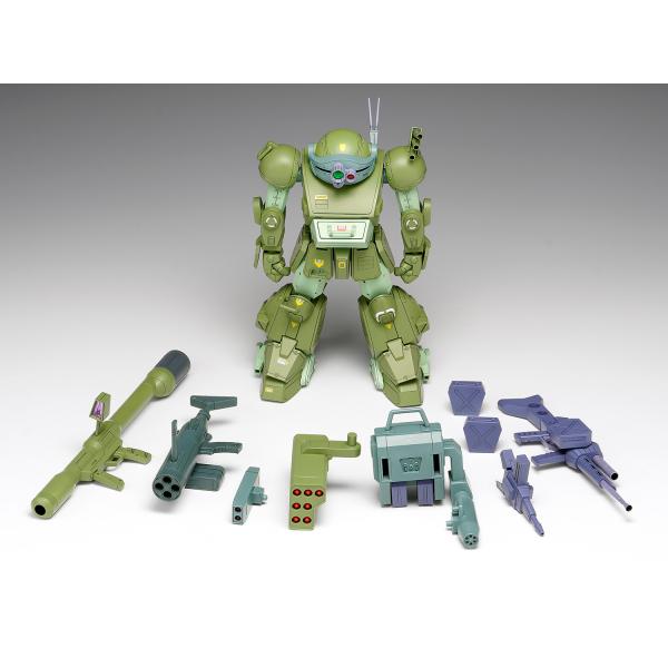 武装は、7連ミサイルポッド、2連ロケットランチャー、ガトリングガンの固定装備に加え、ヘビィマシンガン(ショートバレルにも組み立てられます)、「ハンディロケットランチャー」、「ハンディソリッドシューター」、「ソリッドシューター」が付属しますので、いずれの機体も再現することができます。