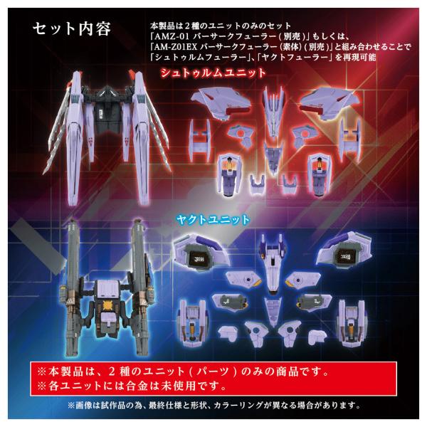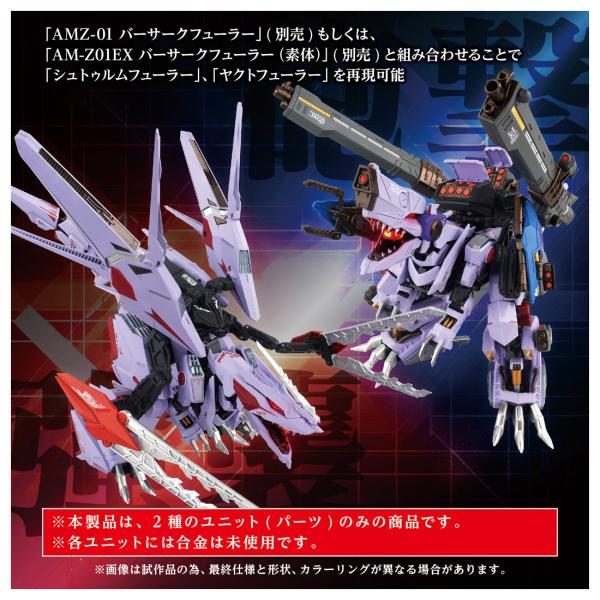 「AMZ-01 バーサークフューラー」(別売)もしくは、「AM-Z01EX バーサークフューラー(素体)」(別売)と組み合わせることで「シュトゥルムフューラー」・「ヤクトフューラー」を再現可能。