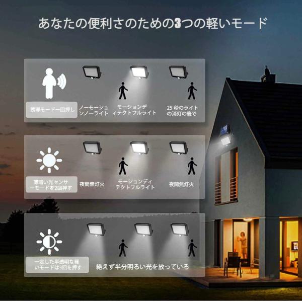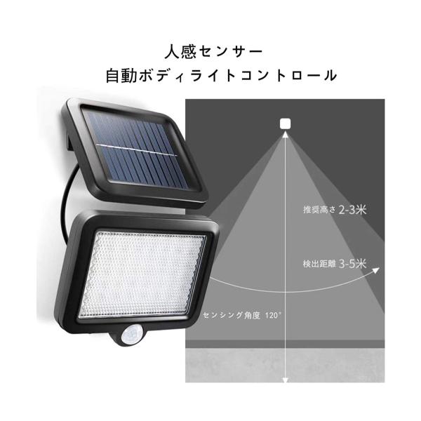センサーライト 屋外 56LED×2ソーラーライト 5Mケーブル モーションディテクター付 3つ知能モード 太陽光発電 防水 人感センサー自動点灯
