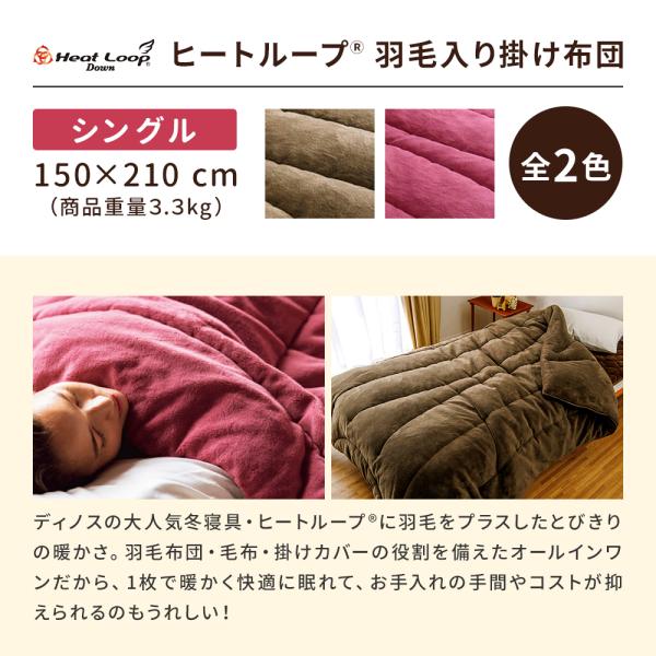 毛布 冬 厚手 羽毛布団 羽毛掛け布団 暖かい 極厚 静電気防止 吸湿発熱 速暖 あったか毛布 あったか寝具 ヒートループ(R)羽毛入り掛け布団 シングル ディノス dinos 人気 おしゃれ