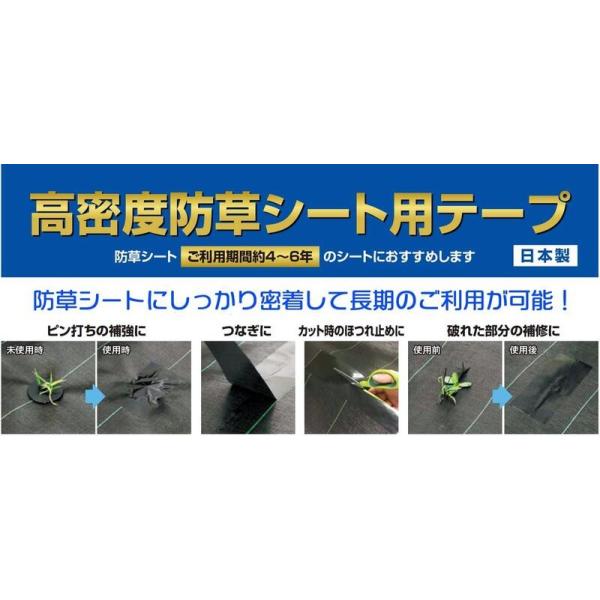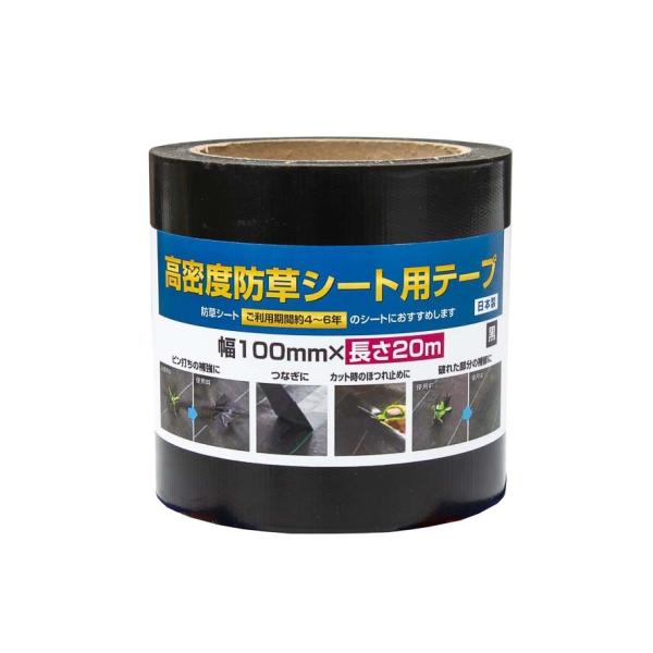 公式 防草シート施工用テープ 100mmx20m 黒 幅広 長巻 高密度防草シート用テープ ピンからの雑草突き抜け防止 PPのシートもしっかりとまる 4-5年用