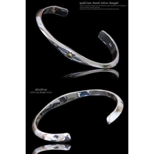 センターにゴールドサンマークをセットしたバングル。 使い込むほどに味のあるエイジング(経年変化)を見せてくれます。バングルはしっかりとした厚みを付けたスターリングシルバー【silver925】を使用しております。