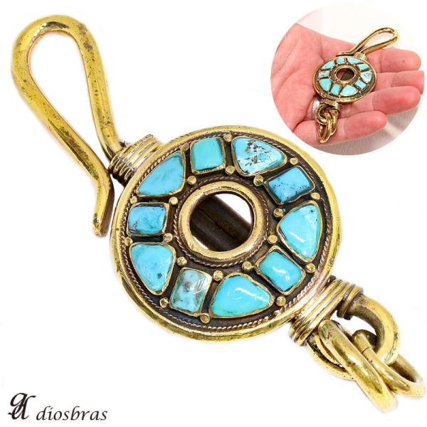 キーホルダー キーフック キーチェーン ゴールド 真鍮 ブラス ターコイズ シルバー サークル