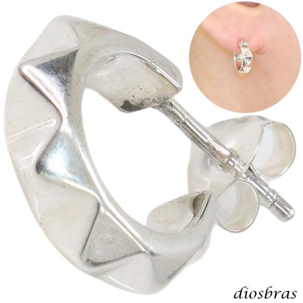 ピアス フープ スタッズ リング 本物シルバー925 片方 ピアス片耳 片方販売ピアス メンズ レディース ピラミッド スタッズ カット