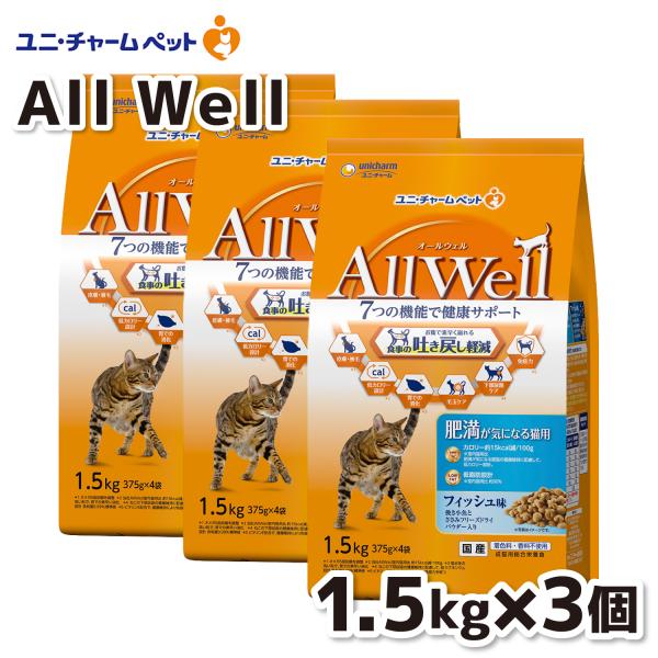 ペット 猫 フードユニ・チャームAllWell 肥満用フィッシュ味FD1.5kg ×3個セット ユニチャーム 猫 はき戻し 健康 肥満 オールウェル カリカリ