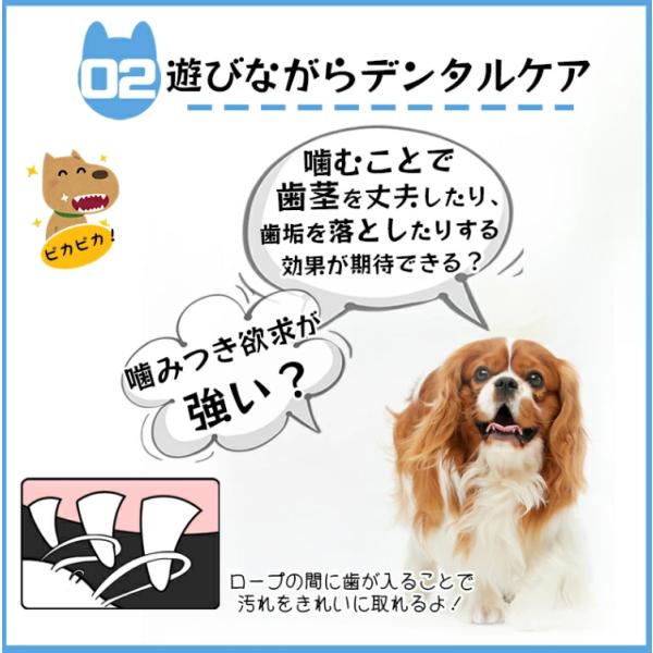 特にロープは歯ぐきをマッサージし、歯垢を除去する効果があります。