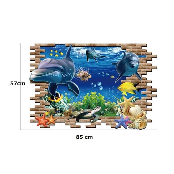癒しの3D ウォールステッカー レンガ窓×イルカ 騙し絵 トリックアート 剥がせる 壁紙 シール 防水 DIY 壁 床 インテリア ポスター 家具
