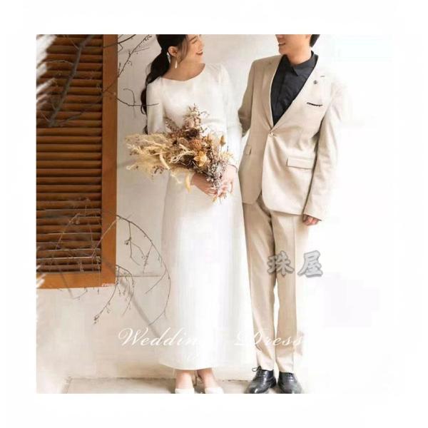 ウェディングドレス エンパイアライン ドレス 長袖ドレス エレガント パーティードレス 花嫁ロングドレス ワンピース結婚式 二次会