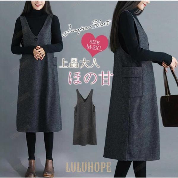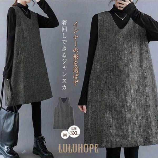 ジャンパースカート 秋 冬 チュニック ワンピース 秋冬 きれいめ ノースリーブ vネック レディース Vネック ノースリーブワンピース