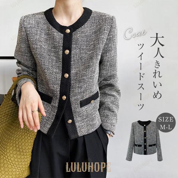 スーツジャケット テーラード レディース フォーマル ツイード スーツ カーディガン 春 秋 オフィス 通勤 OL 卒業式 卒園式 入園式 30代 40代 50代