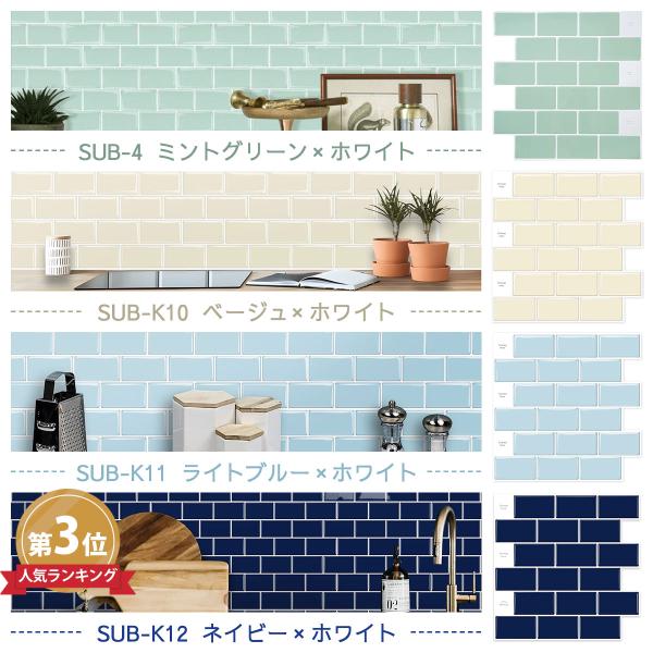 タイルシール サブウェイカラーズ 賃貸ok タイルシート 防水 耐熱 100度 キッチン 洗面台 浴室 DIY 壁パネル 貼るだけ 陶器風に簡単リメイク 30×7.5cm 4枚組