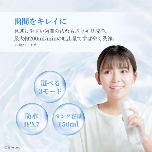 ドリテック 公式 口腔洗浄器 「ジェットクリーン スマート」 ジェットウォッシャー 歯間 口内 洗浄 防水 ノズル付き 8段階 口腔ケア 持ち運び 小型 FS-103