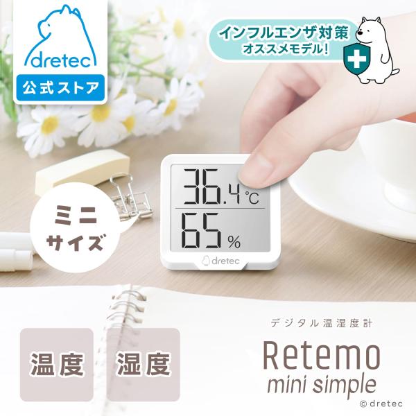 ドリテック 公式 温湿度計 「リテーモ・ミニ・シンプル」 温湿度計 温度計 湿度計 デジタル シンプル インフルエンザ 熱中症 白 ホワイト O-454