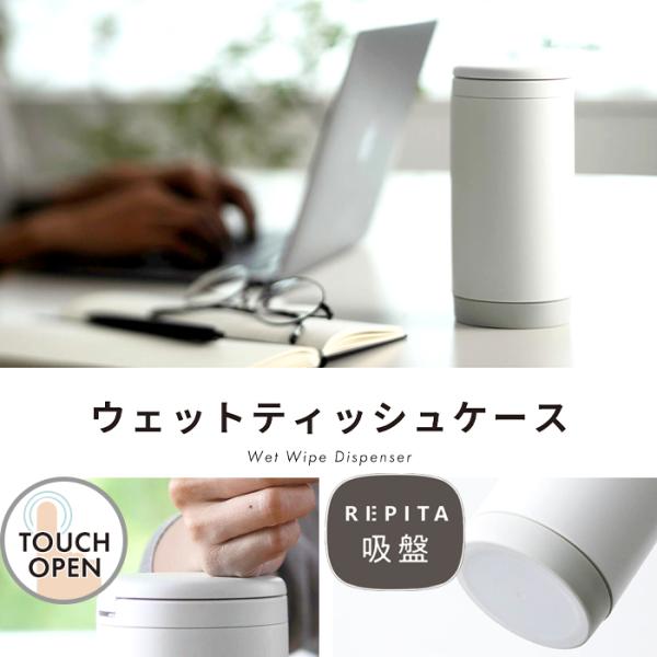 片手で使えるパッキン付きウェットティッシュケースです。マーナ開発、しっかり固定できて触れるだけで外せるフレキシブルな吸盤「REPITA(リピタ)」を採用。フタを押すだけで開閉できて、そのままサッと引き出せます。