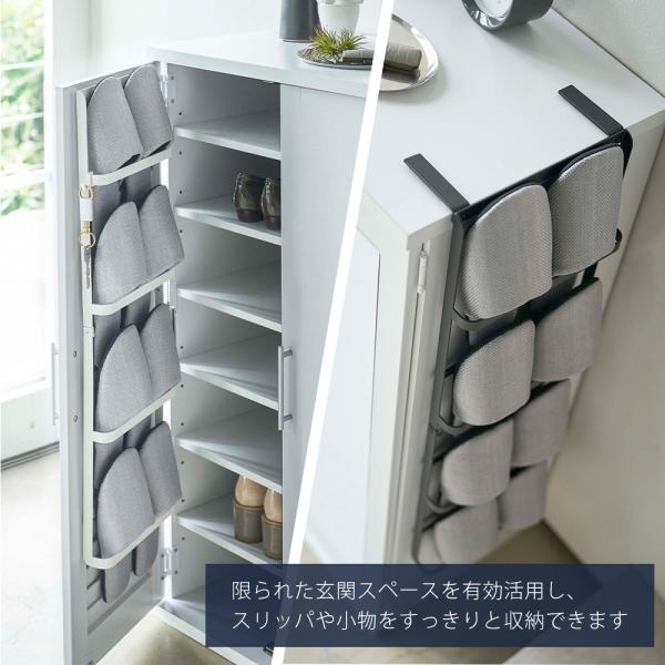 山崎実業 公式 タワー 下駄箱扉&引っ掛け式 スリッパラック tower スリッパホルダー 4足 靴べら フック付き 靴箱扉 玄関収納 4894 4895