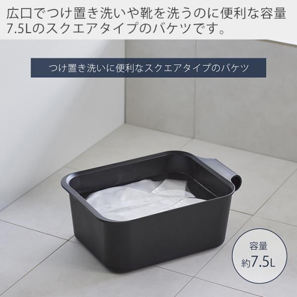 引っ掛けても収納できるスクエア型のバケツ。