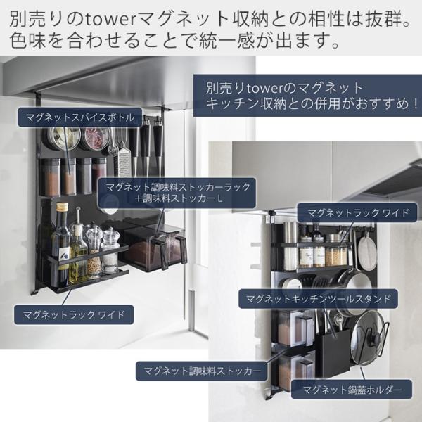 フック付き レンジ横 奥 引っ掛け マグネット収納 整理整頓 タワー ホワイト ブラック ヤマザキ実業 ヤマジツ