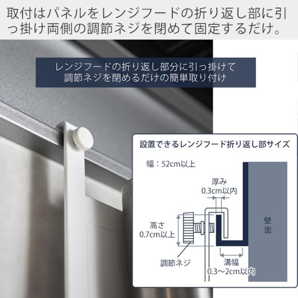 レンジフードに掛けて使うスチールパネル。