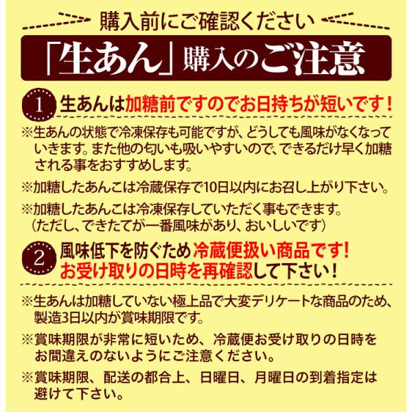 ◆生あんは加糖してありませんので、製造3日以内が賞味期限です。