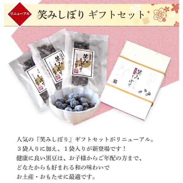 丹波黒豆しぼり甘納豆「笑みしぼり」ギフトセット 110g×3袋入り 御中元