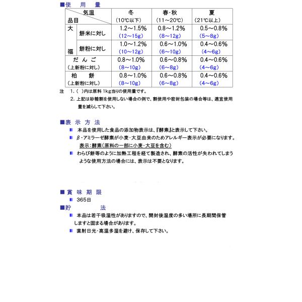 成分及び重量%:βアミラーゼ(小麦・大豆由来)・・・12% 食品素材・・・88%