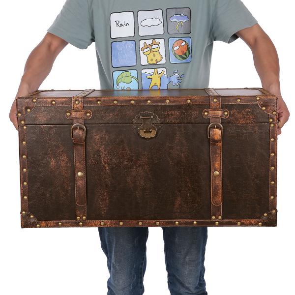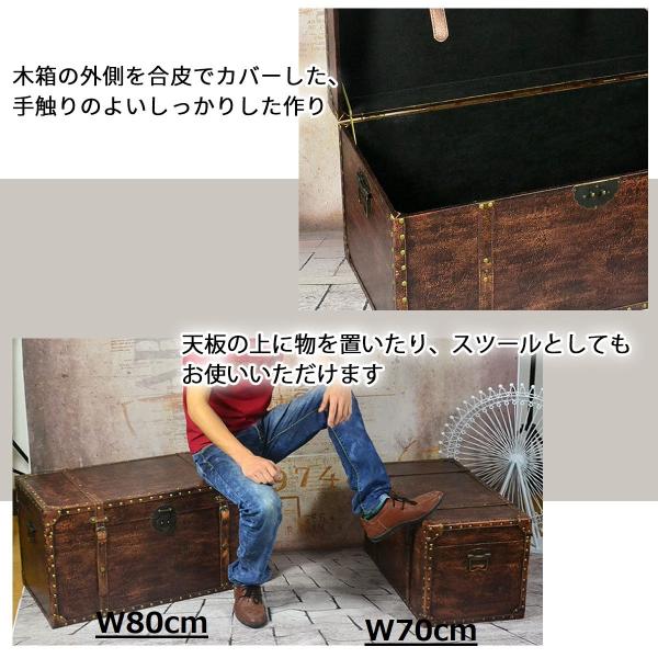鍵付き トランク型 収納ボックス 大型 トランクボックス アンティーク木箱 海賊 アンティーク宝箱 横幅約70cm