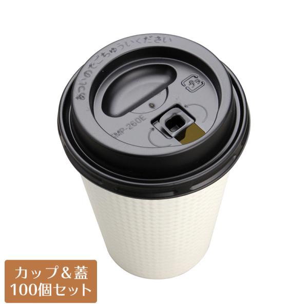 紙コップ蓋付 断熱性 エンボス紙コップ 白無地 SMP-260E リフトアップリッド 黒 トーカン 100個セット