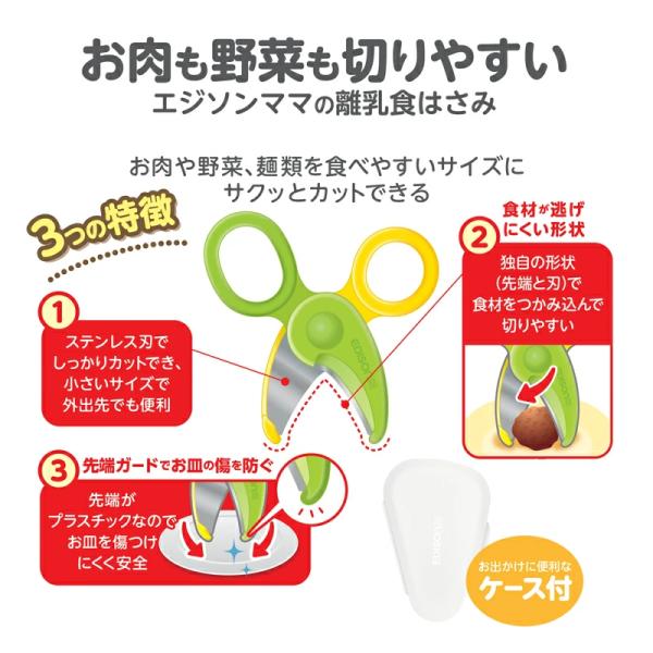 EDISONmama エジソンママ 日本製 【離乳食はさみ】 専用ケース付き ステンレス製 ベビーフード ハサミ フードカッター ヌードルカッター Baby 赤ちゃん キッチン