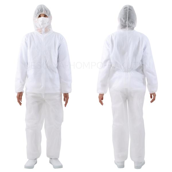 軽くて丈夫なポリプロピレン不織布製のつなぎ服(作業服)です。