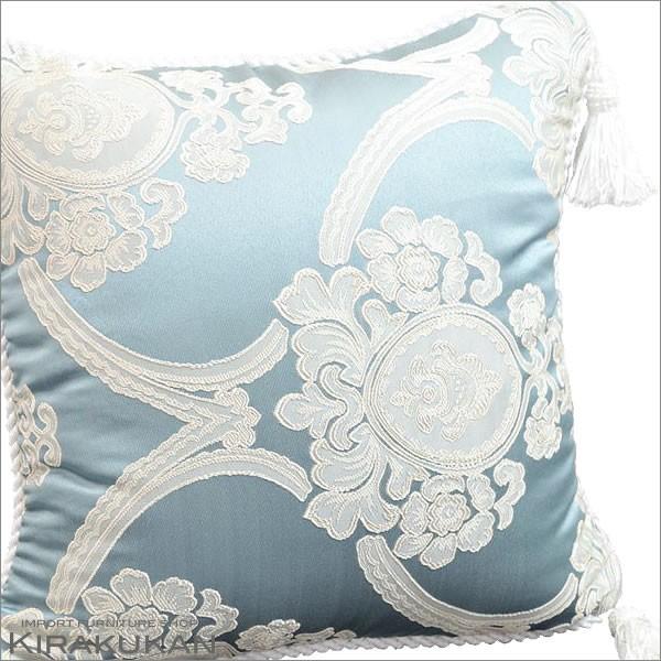 【商品名】アクアフラワー オペラブルー:クッションカバー パンヤ別 タッセル付