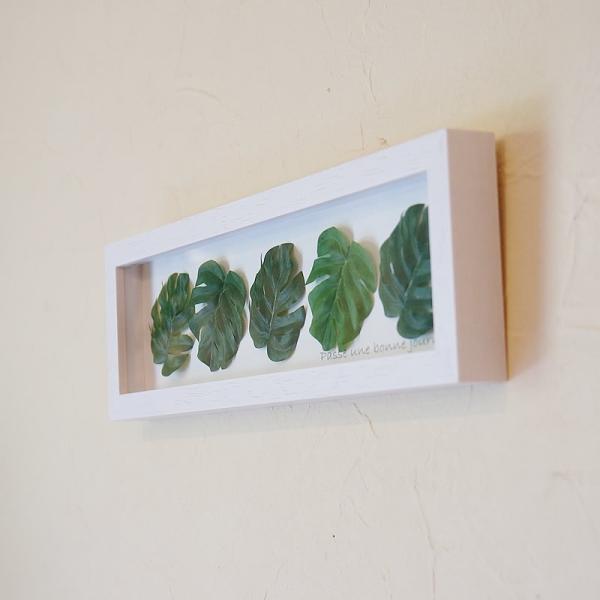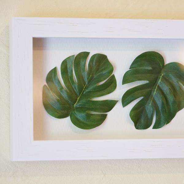 リーフフレーム パネル モンステラ 葉5枚 額 横型 ホワイト枠 造花 観葉植物 おしゃれ 絵画