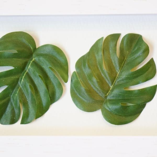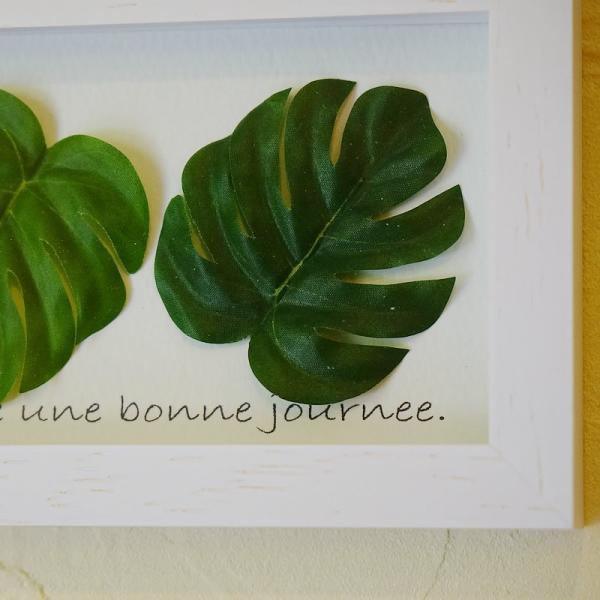 【商品名】リーフフレーム パネル モンステラ 葉5枚 額 横型(ホワイト枠)