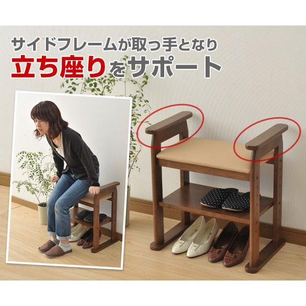 玄関ベンチ 腰掛け ベンチ 2段 玄関収納 手すり付き