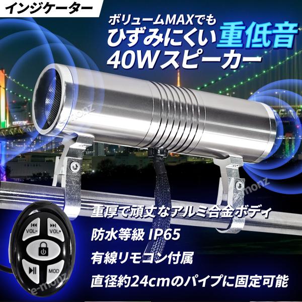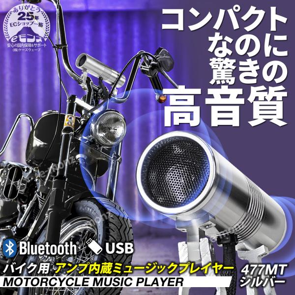 バイク用 アンプ内蔵 Bluetooth ミュージックプレーヤー 【 477MT 】 シルバー アンプ内蔵 Bluetooth USB MP3 防水IP64 ハンドル アメリカンスタイル