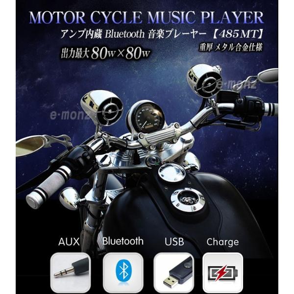 バイク 防水スピーカー アンプ内蔵 Bluetooth ミュージックプレーヤー 防水IPX4 ハンドル フロントフォーク アメリカンスタイル 【485MT メタリックシルバー】