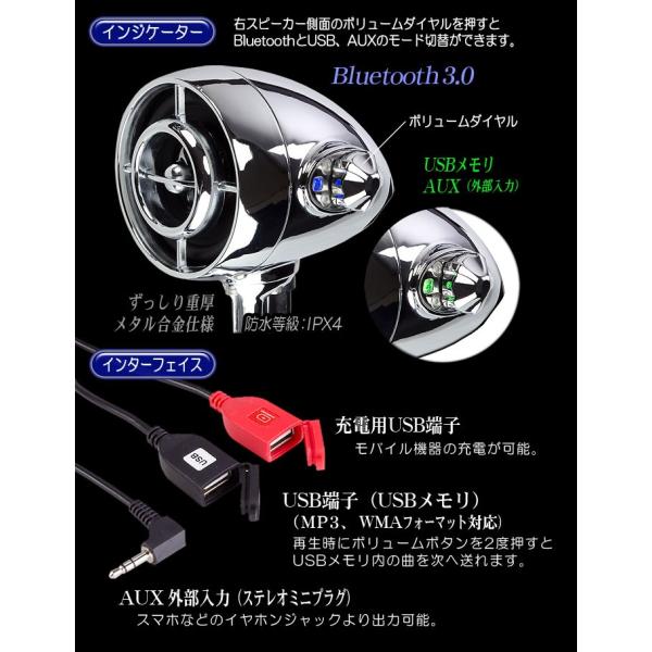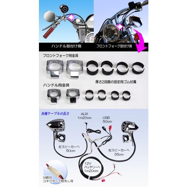 アメリカン ビッグスクーター スクーター ネイキッド ツアラー 原付 スマートフォン iPhone motorcycle 単気筒 オートバイ ブルートゥース オーディオ デッキ Audio メッキ カーステレオ アンプ スピーカー 防水 スクーター 大口径<br>