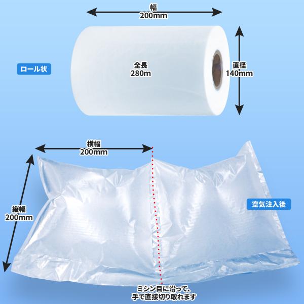 エアー緩衝材 ロール エアピー専用 【 B501B 】チューブタイプ 280M 200mm×200mm エアーパッキン エアークッション エアーキャップ エアー 梱包材 包装資材
