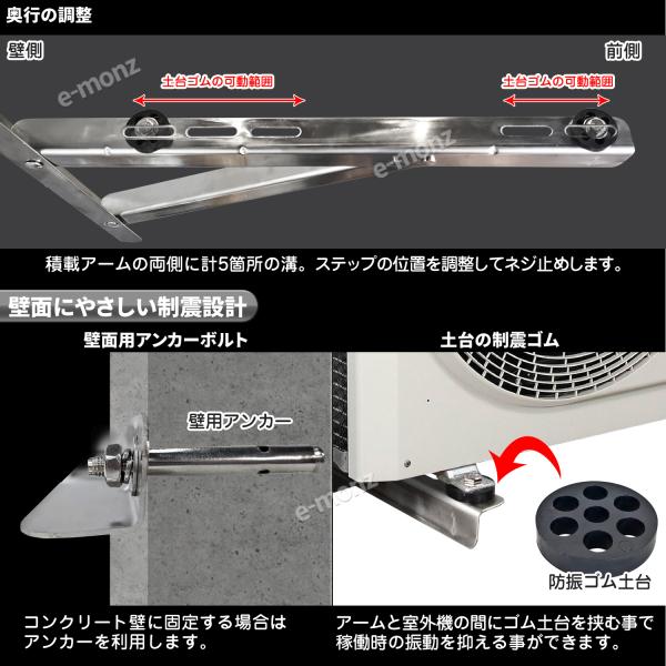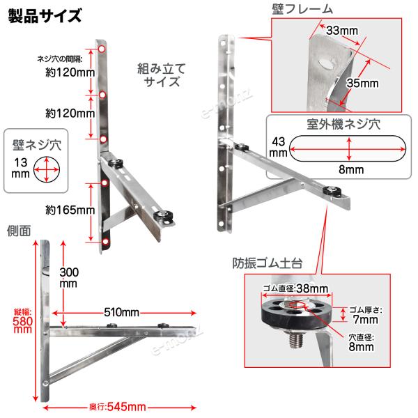 エアコン架台 室外機用 壁掛け【 高級ステンレスタイプ 】 最大荷重300kg ステンレス製 防振ゴム 壁面 室外機用架台 室外ユニット用据付架台 室外ユニット用
