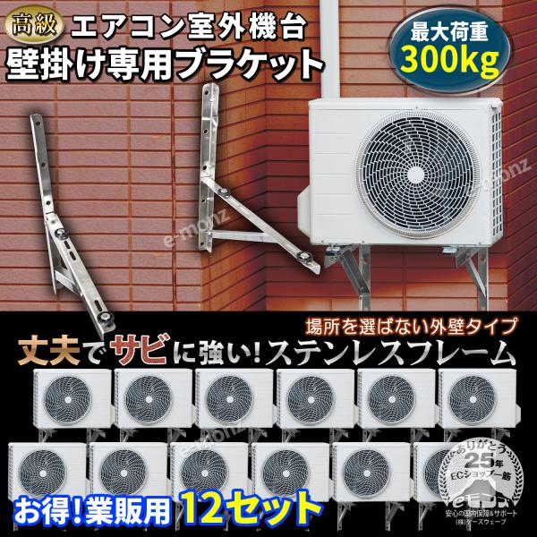 エアコン架台 室外機用 壁掛け【 高級ステンレスタイプ 12台セット 】 最大荷重300kg 防振ゴム 壁面 室外機用架台 室外ユニット用据付架台 室外ユニット用