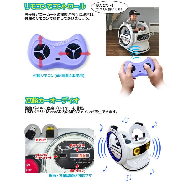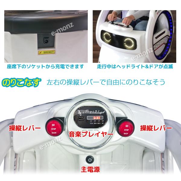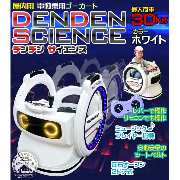 電動乗用カー 【 デンデン サイエンス 】 ホワイト 子供用 360度ターン 安全ベルト リモコン オーディオ 電動乗用ラジコンカー ゴーカート のりもの おもちゃ