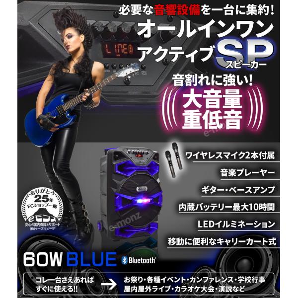 移動式 PAシステム 【 オールインワン アクティブ スピーカー 】 60W キャスター付 スピーカー ライブ ハンドキャリー マイク付 USB対応 ポータブルスピーカー