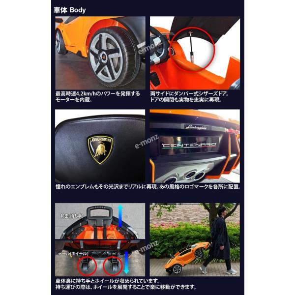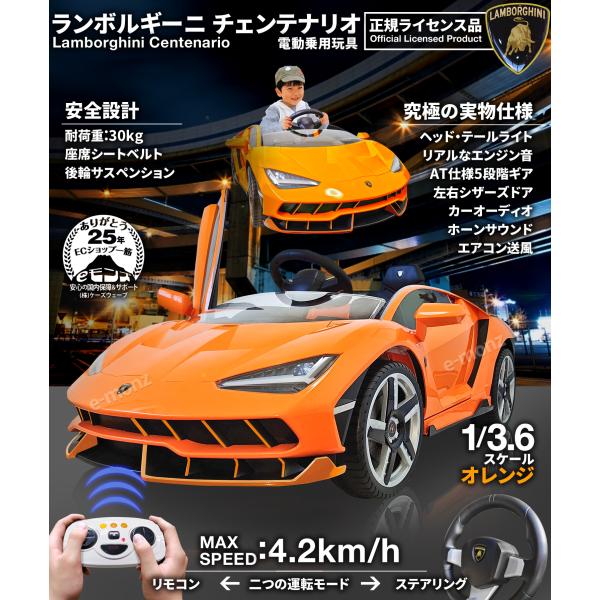 ★期間限定セール中★ ランボルギーニ社公認 電動乗用カー 子供用【 ランボルギーニ チェンテナリオ 】 オレンジ プロポ ペダル操作 オーディオ エアコン