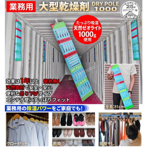 [インボイス対応!] 大型乾燥剤 【 DRY POLE 1000 】ドライポール 1000g 天然ゼオライト 調湿剤 コンテナ 吊下げ式 業務用 除湿 大型 収納庫 水回り 天井裏 物置