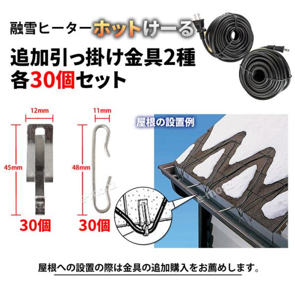 融雪ケーブル 融雪ヒーター 【 ホットけーる専用 屋根用追加 引っ掛け金具 】30個セット 家庭用