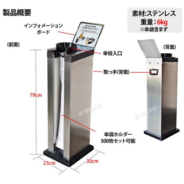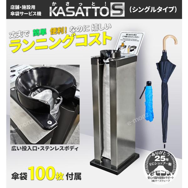 【業務用】 傘袋スタンド シングルタイプ スリム 長傘 ステンレス製 傘袋100枚付属 【 傘袋サービス機 KASATTO カサット シングル 】