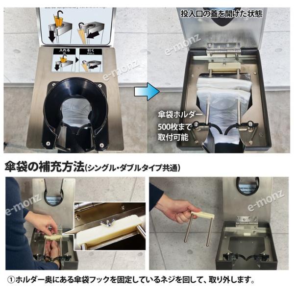 [インボイス対応!] 傘袋サービス機 【 KASATTO シングル 】 長傘用 傘袋スタンド 傘袋 100枚付 ステンレス 業務用 傘袋装着機 傘包装機械 傘袋サービス機